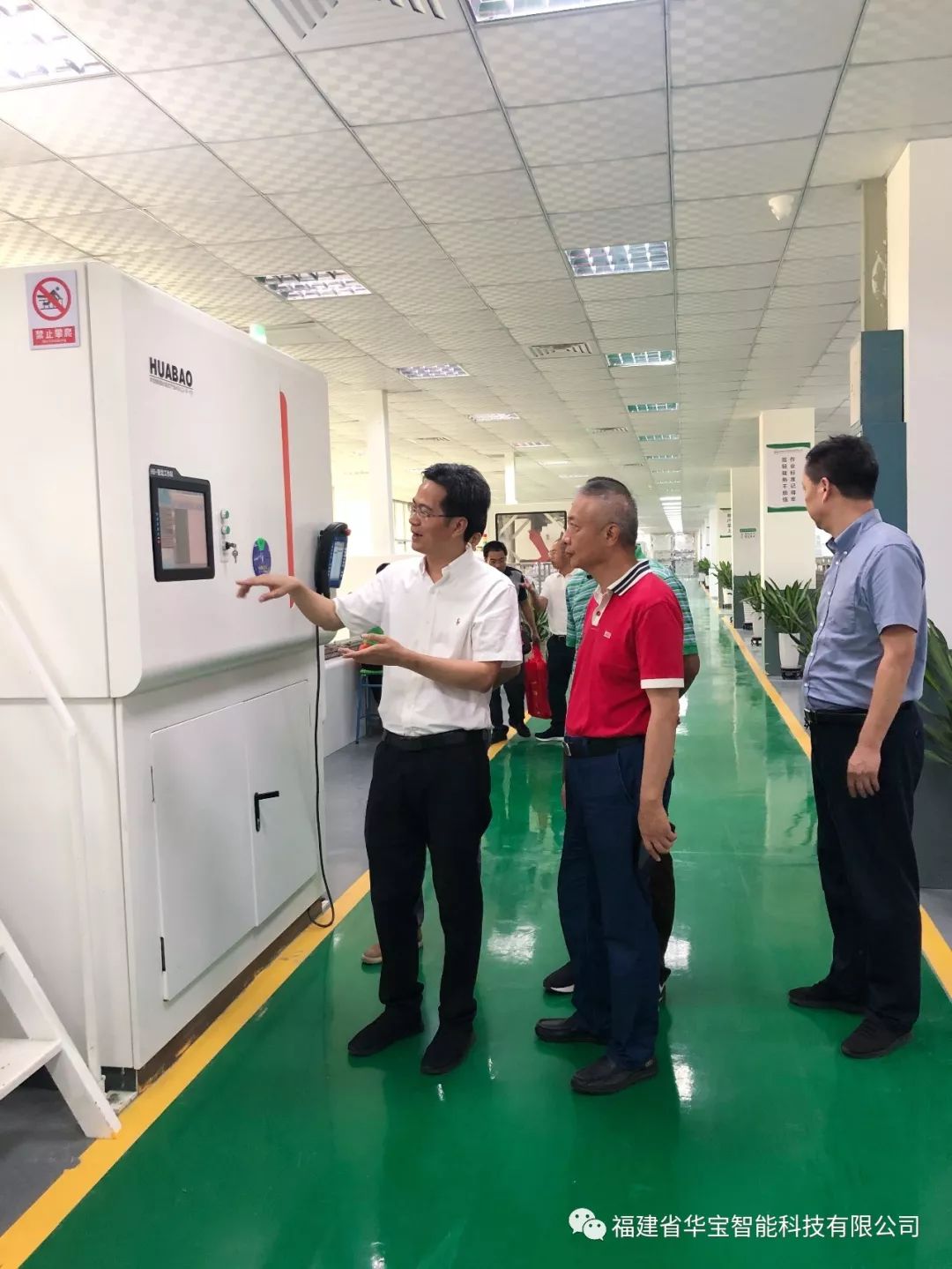 福建華閩集團(tuán)劉平山董事長(zhǎng)、王志明副董事長(zhǎng)、池徳庭常務(wù)副總、張靚董事長(zhǎng)助理、林玉明業(yè)務(wù)部經(jīng)理、技術(shù)人員張平山一行對(duì)華寶科技休閑鞋智能化成型生產(chǎn)線(xiàn)硫化工藝產(chǎn)線(xiàn)以及冷粘工藝產(chǎn)線(xiàn)進(jìn)行參觀,同時(shí)也對(duì)華寶科技致力于鞋業(yè)的自動(dòng)化控制和鞋業(yè)機(jī)械的相關(guān)產(chǎn)品的研 發(fā)、生產(chǎn)和銷(xiāo)售表示支持與肯定!