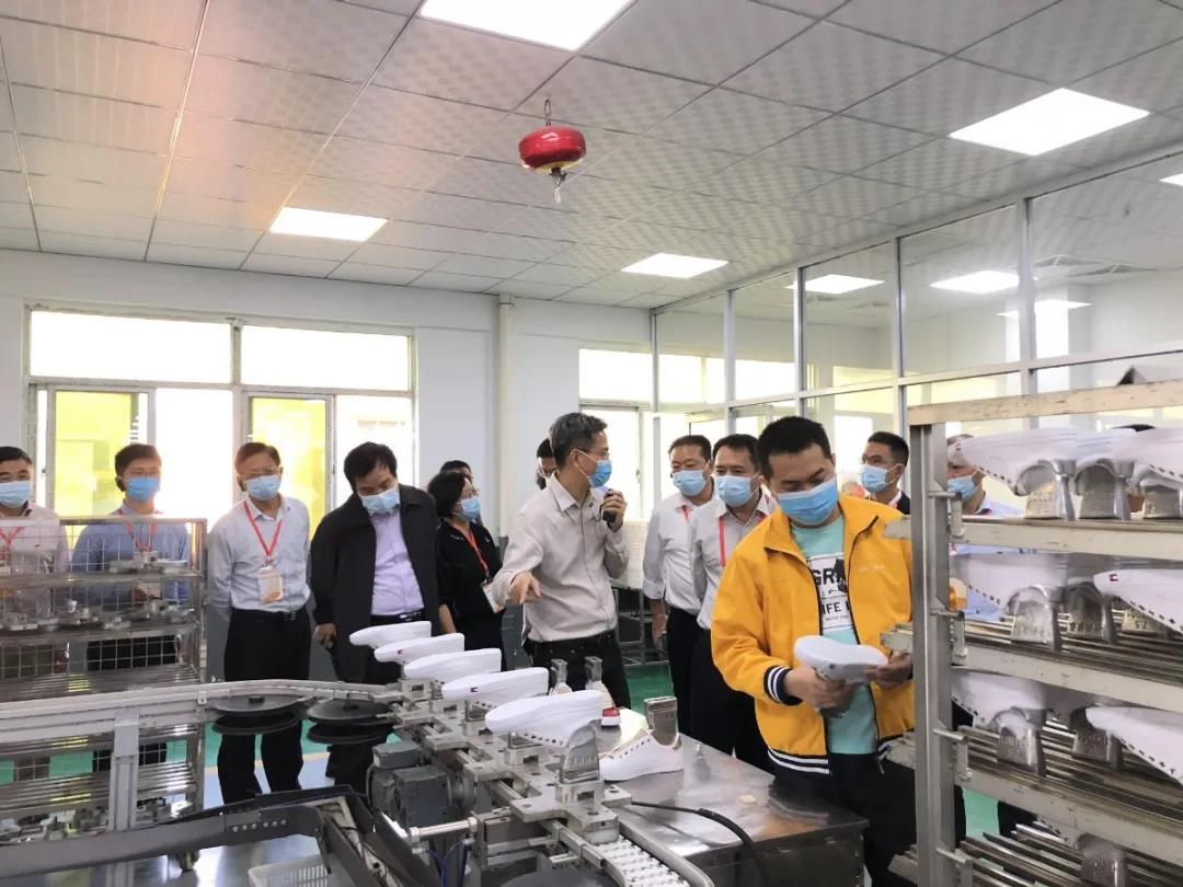 兩批次,近百人,華寶科技全員熱心接待。公司主要負(fù)責(zé)人帶領(lǐng)專題班學(xué)員深入制鞋智能應(yīng)用車間現(xiàn)場(chǎng),實(shí)地了解制鞋智能產(chǎn)線。